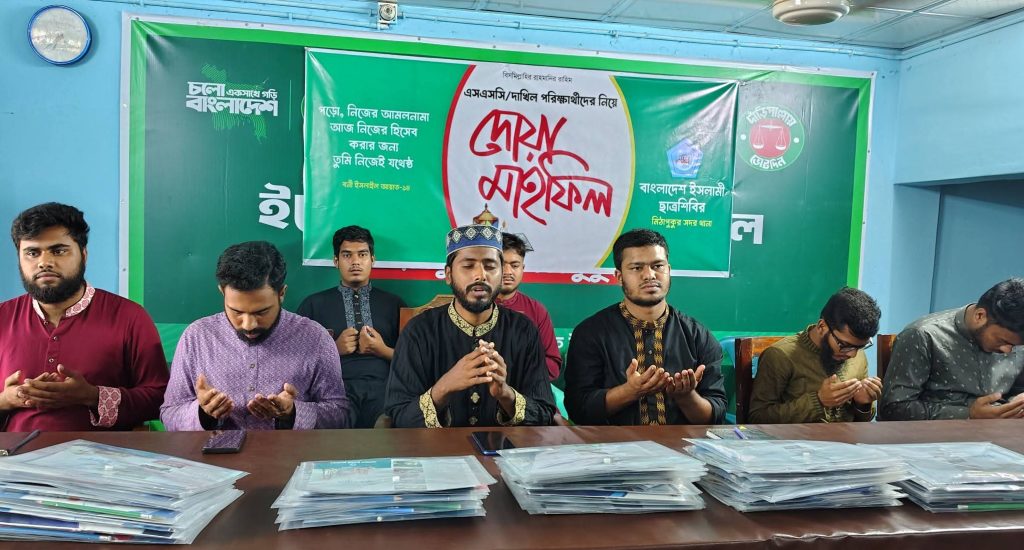 এসএসসি, দাখিল ও সমমান পরীক্ষার্থীদের সফলতা কামনায় দোয়া মাহফিলের আয়োজন করেছে ছাত্রশিবির মিঠাপুকুর সদর সাংগঠনিক থানা শাখা।[/caption]